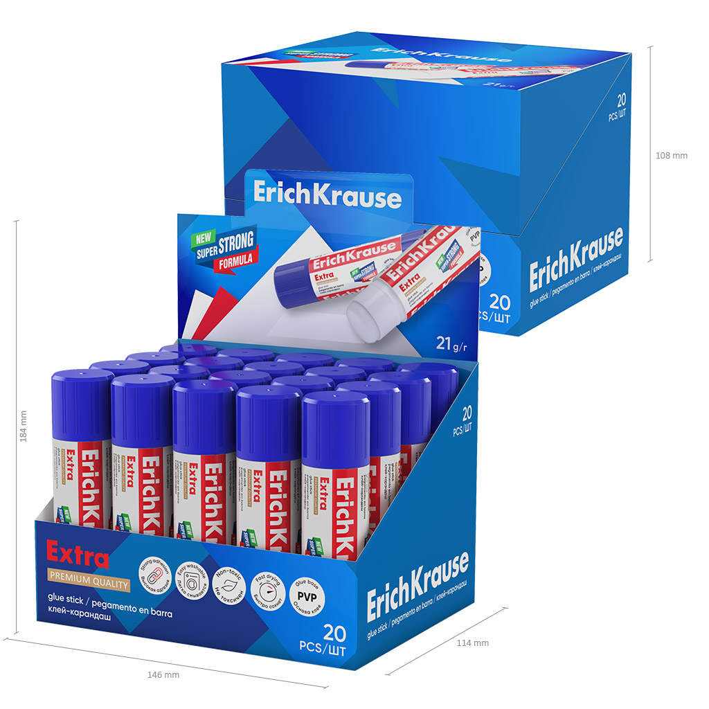 Клей-карандаш ErichKrause Extra, 21г (в коробке-дисплее по 20 шт.)