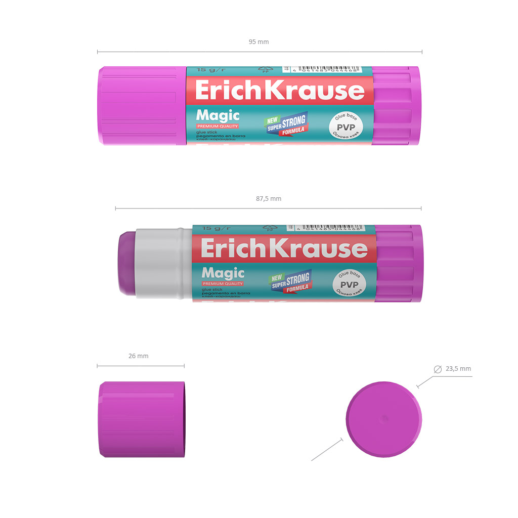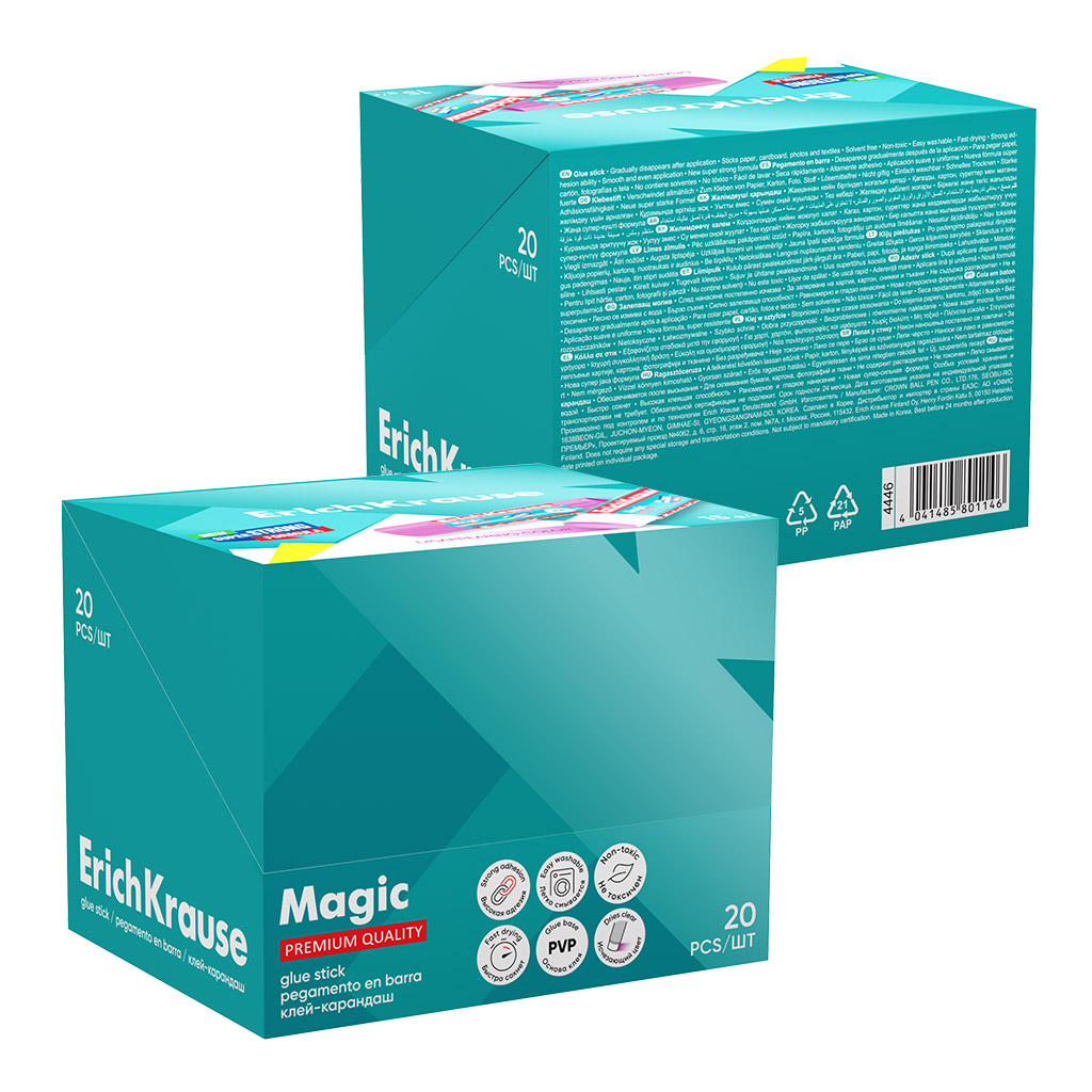 Клей-карандаш ErichKrause Magic, обесцвечивающийся после нанесения, 15г (в коробке-дисплее по 20 шт.) |