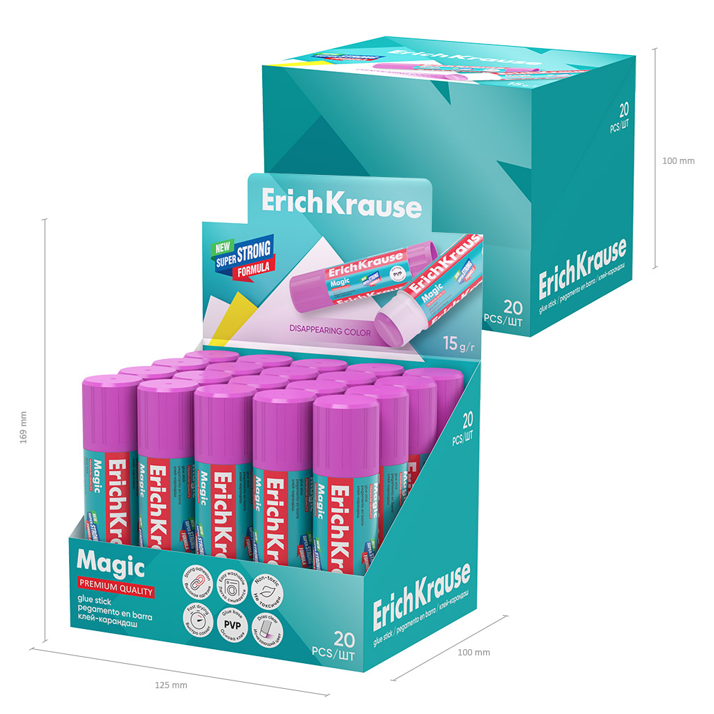Клей-карандаш ErichKrause Magic, обесцвечивающийся после нанесения, 15г (в коробке-дисплее по 20 шт.)
