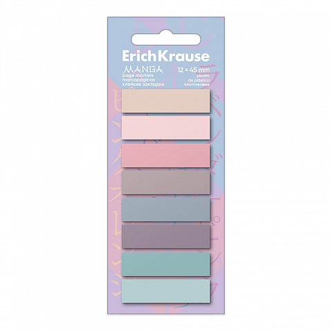 Клейкие закладки пластиковые ErichKrause Manga, 45х12 мм, 160 листов, 8 цветов |