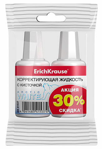 Корректирующая жидкость ErichKrause® Arctic white, 20мл с кисточкой (промо упаковка пакет 2 шт.) |