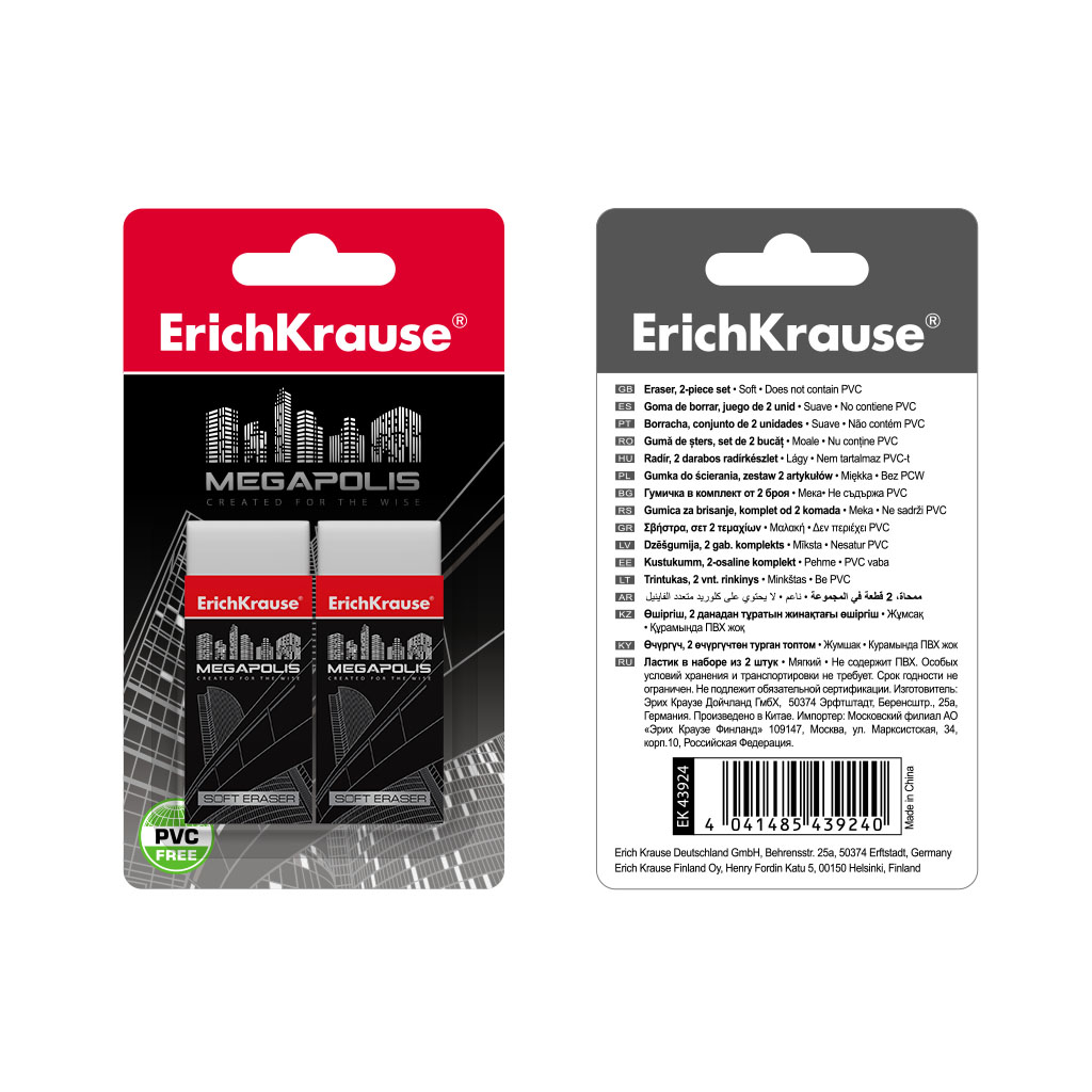 Набор из 2 ластиков ErichKrause MEGAPOLIS (в блистере) |