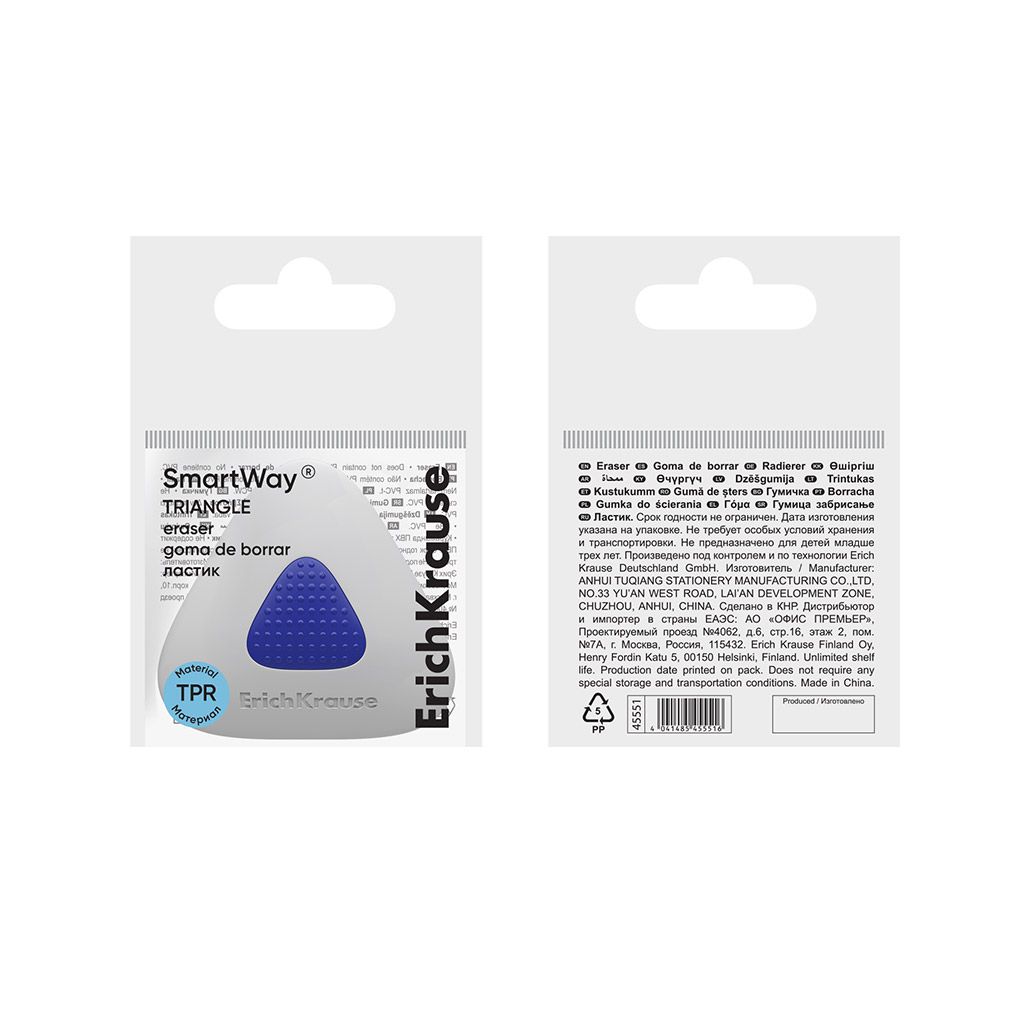 Ластик с пластиковым держателем ErichKrause SmartWay® Triangle (в пакете с европодвесом) (в коробке по 24 шт.) |