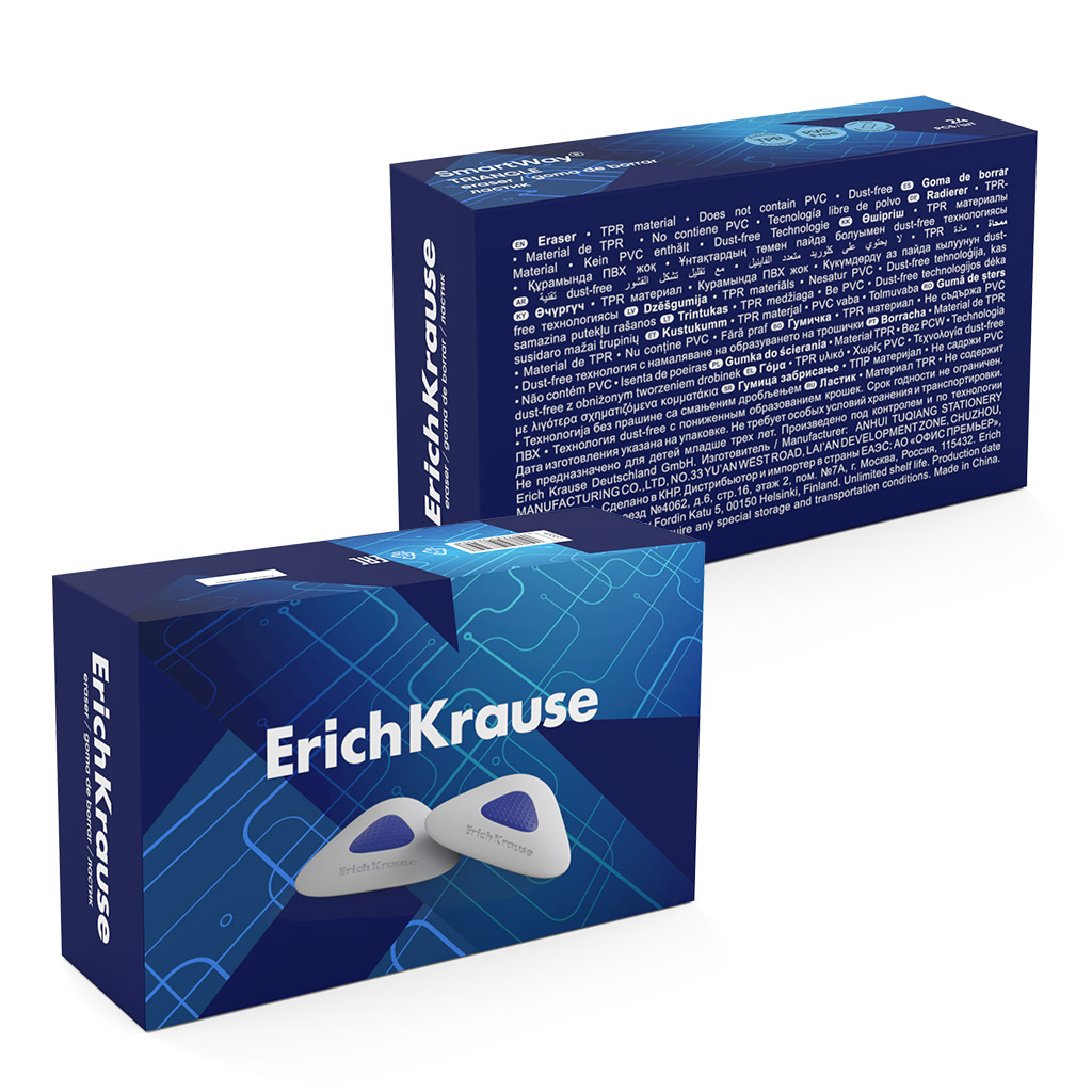 Ластик средней жесткости оргинальной формы из современного и экологически чистого и гипоаллергенного материала термопластичной резины (TPR) с пониженным образованием крошек (Dust free) с эргономичным пластиковым держателем. Не содержит ПВХ. Размер 46 х 43 х 12 мм. |