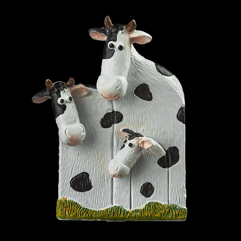 Три коровки, сидящие рядом - оригинальный Символ 2021 года. Отличается необычным дизайном - объемные головы прикреплены к плоским телам. Магнит на обратной стороне изделия прочно удерживает сувениир на металлических поверхностях. Групповая упаковка предназначена только для безопасной транспортировки и хранения. |