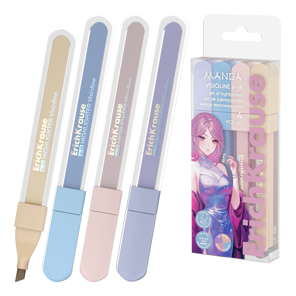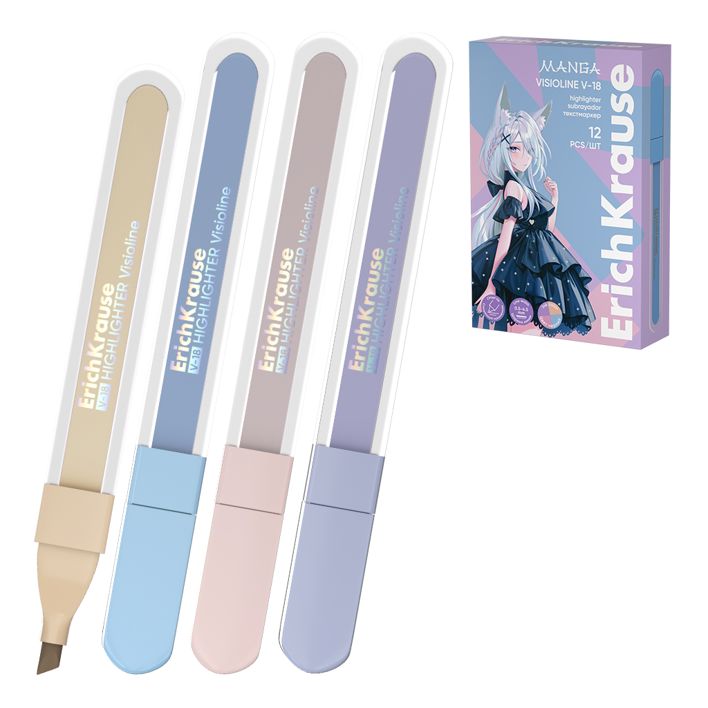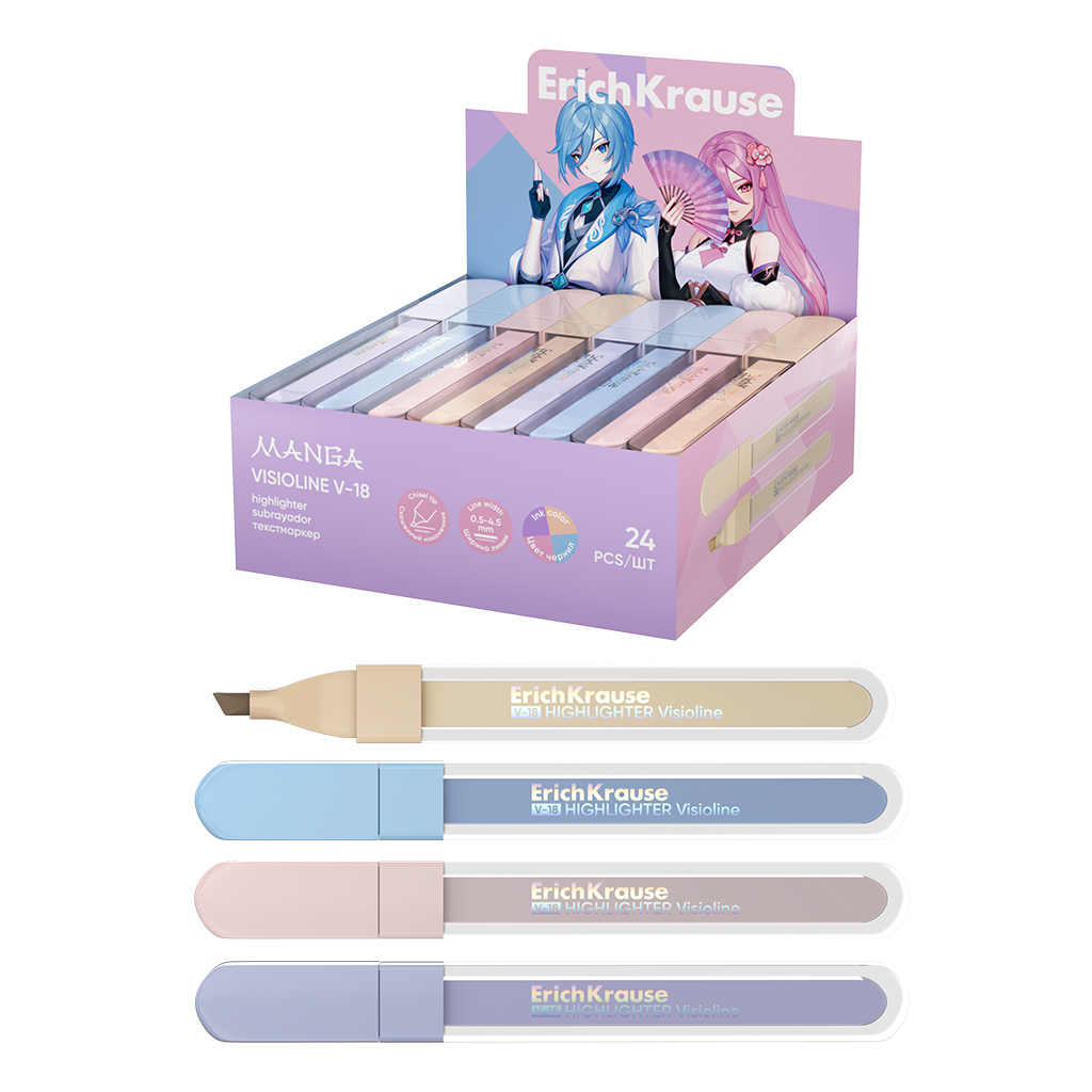 | Полное наименование товара: | Текстмаркер ErichKrause Visioline V-18 Manga, цвет чернил: фиолетовый, розовый, бежевый, голубой (в коробке-дисплее по 24 шт.) |