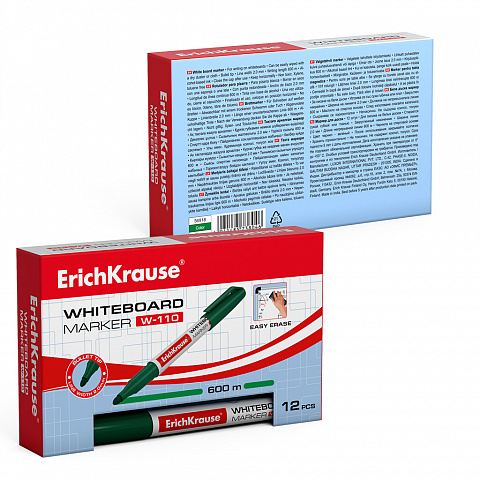 Маркер для досок ErichKrause W-110, цвет чернил зеленый (в коробке по 12 шт.) |