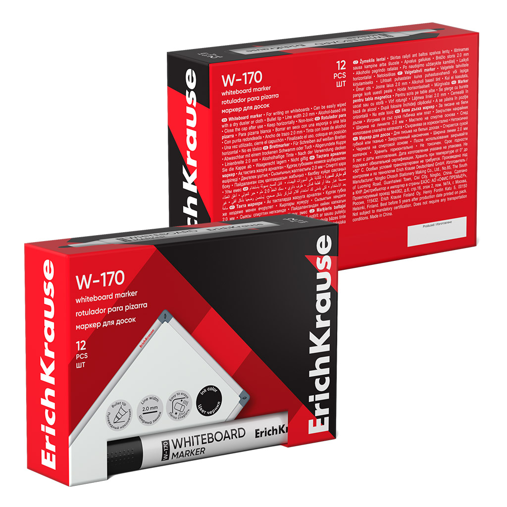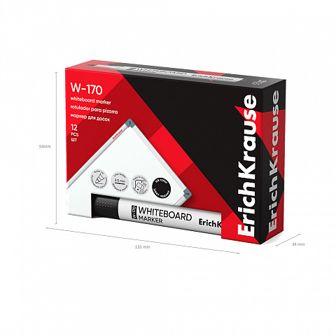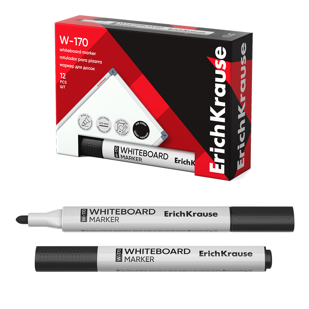 Маркер для досок ErichKrause W-170, цвет чернил черный (в коробке по 12 шт.) |