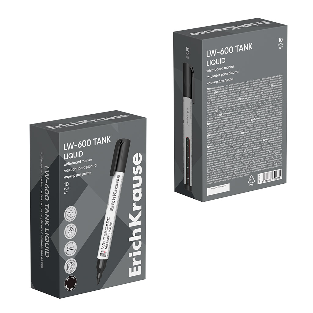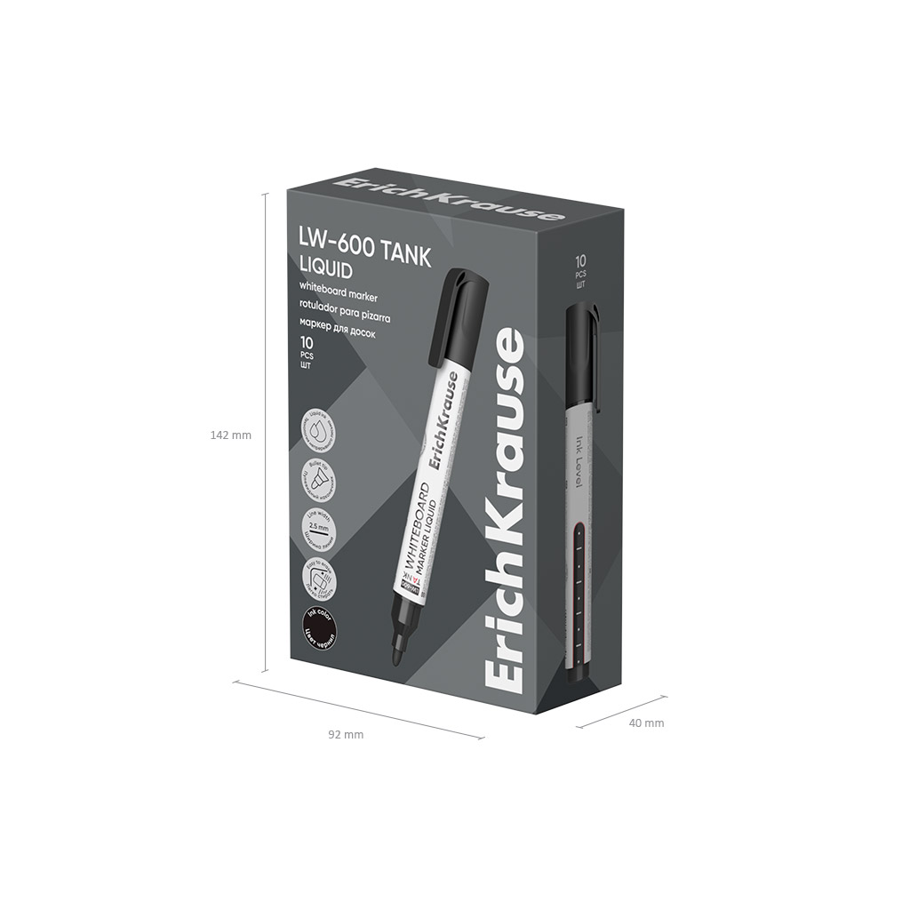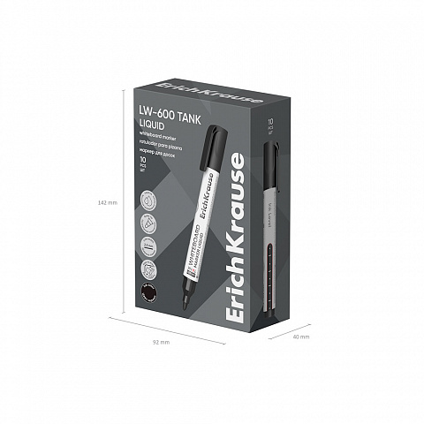 Маркер для досок с жидкими чернилами ErichKrause LW-600 Tank Liquid, цвет чернил черный (в коробке по 10 шт.) |