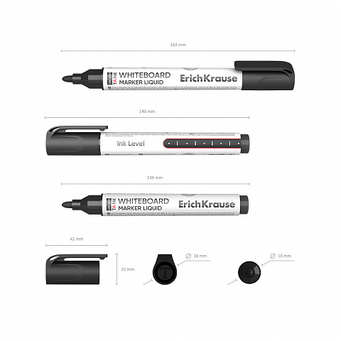 Маркер с жидкими чернилами для письма на белых досках. Очень практичный, незаменим во время проведения презентаций, совещаний и пр. Имеет увеличенный запас чернил. Имеет круглую форму корпуса, цветной колпачок, соответствующий цвету чернил и прозрачное окно для проверки уровня чернил. Наконечник пулевидной формы, устойчивый к повреждению и истиранию. Толщина письма – 2.5 мм. Чернила на спиртовой основе, быстро высыхают после нанесения. Надписи легко стираются сухой тканью, не оставляя следов. Нетоксичные. Не содержат ксилол, толуол. Хранить горизонтально. Срок годности 5 лет. |