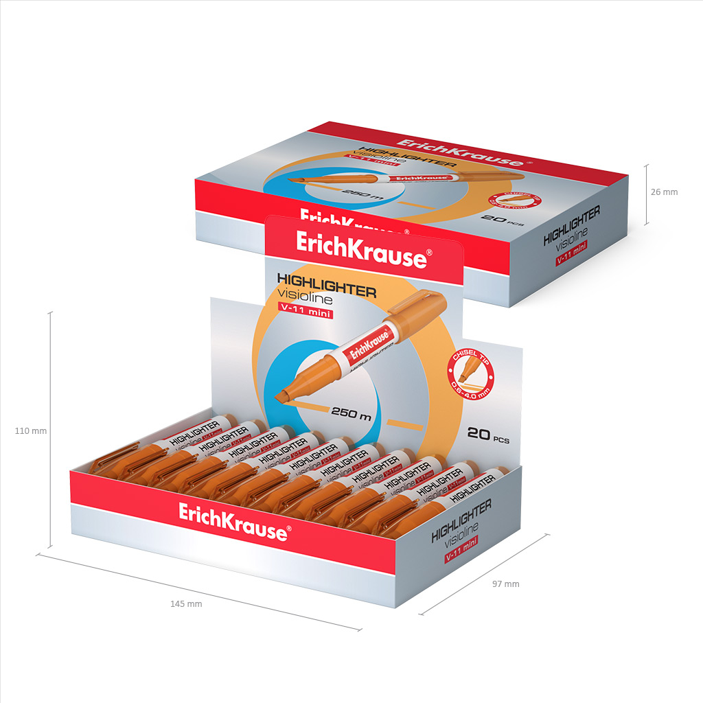 Текстмаркер ErichKrause Visioline V-11 Mini Neon, цвет чернил оранжевый (в коробке-дисплее по 20 шт.)