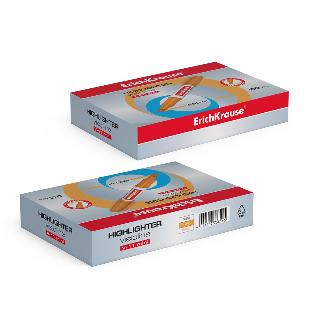 Текстмаркер ErichKrause Visioline V-11 Mini Neon, цвет чернил оранжевый (в коробке-дисплее по 20 шт.) |