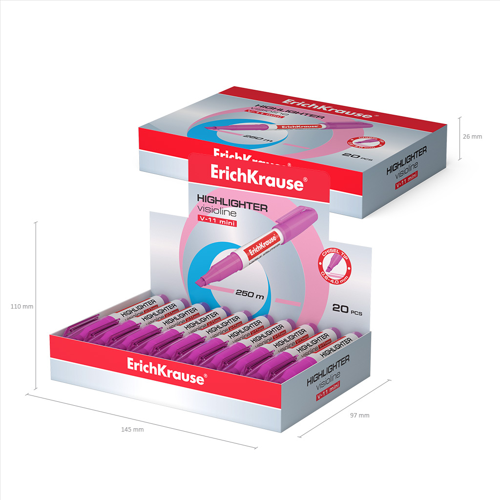 Текстмаркер ErichKrause Visioline V-11 Mini Neon, цвет чернил розовый (в коробке-дисплее по 20 шт.)