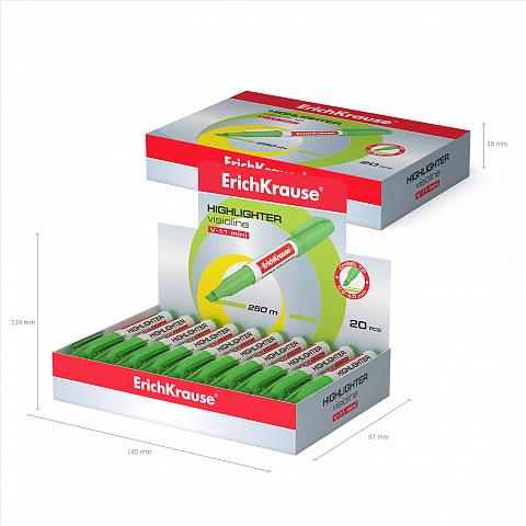 Текстмаркер ErichKrause Visioline V-11 Mini Neon, цвет чернил зеленый (в коробке-дисплее 20 шт.) |
