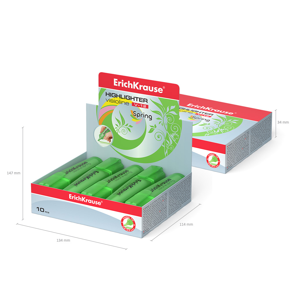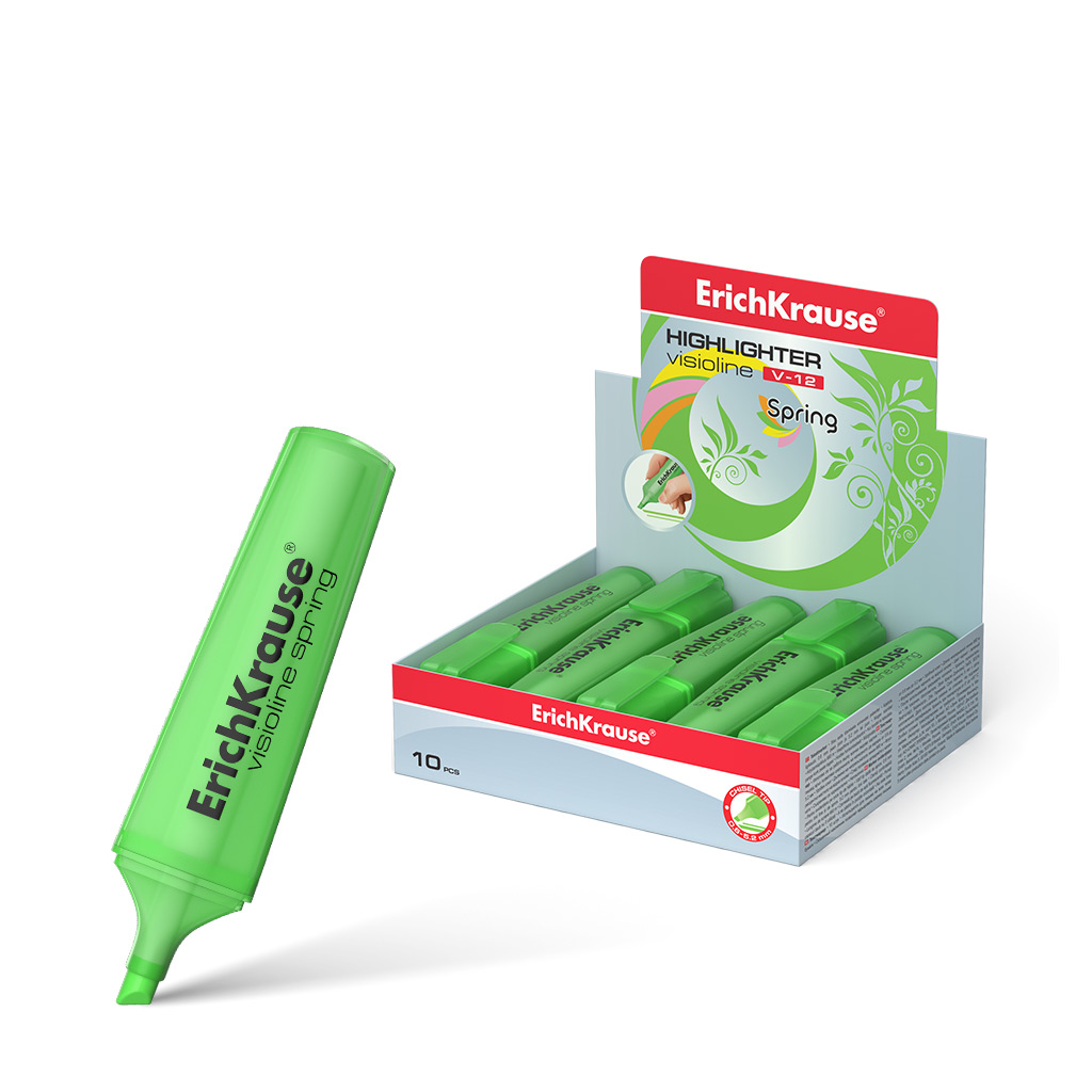 Текстмаркер ErichKrause Visioline V-12 Spring, цвет чернил зеленый (в коробке-дисплее 10 шт.) |