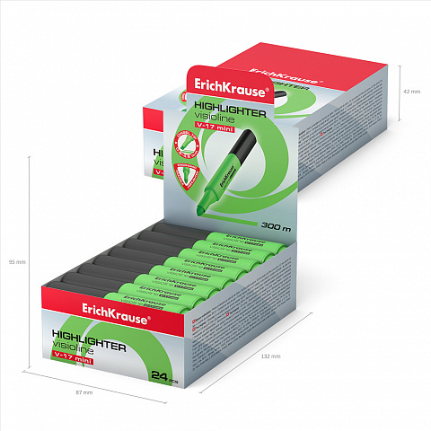 Текстмаркер ErichKrause Visioline V-17 Mini Neon, цвет чернил зеленый (в коробке-дисплее 24 шт.) |