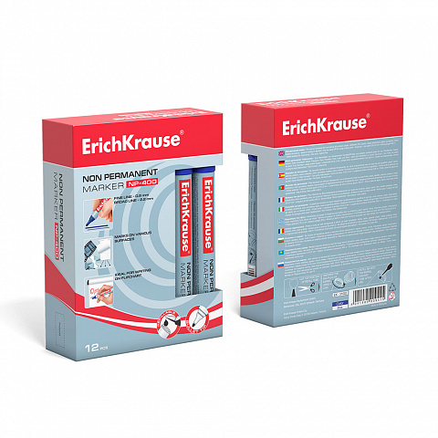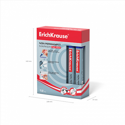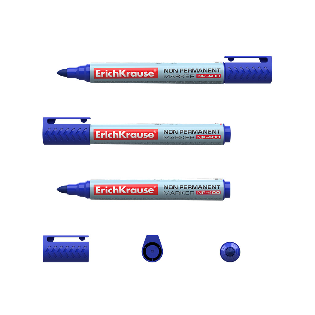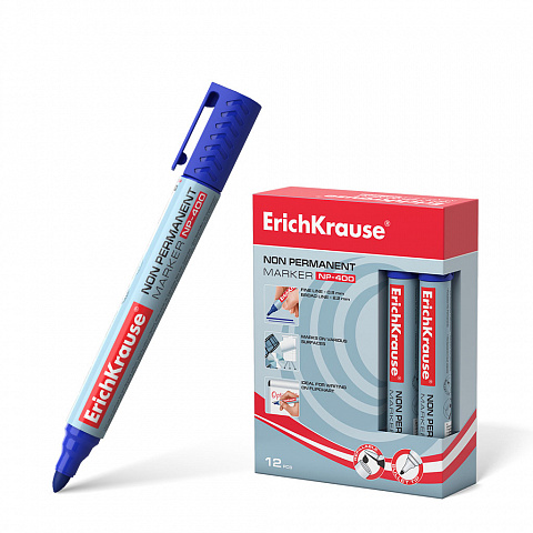 Неперманентный маркер ErichKrause® NP-400, цвет чернил синий (коробка 12 шт.) |