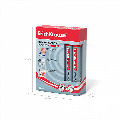 Неперманентный маркер ErichKrause® NP-400, цвет чернил красный (коробка 12 шт.) |