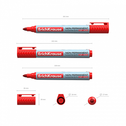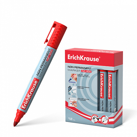 Неперманентный маркер ErichKrause® NP-400, цвет чернил красный (в коробке по 12 шт.) |