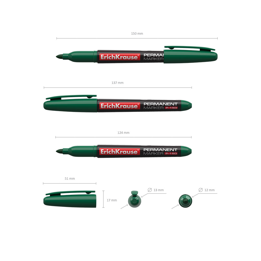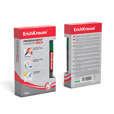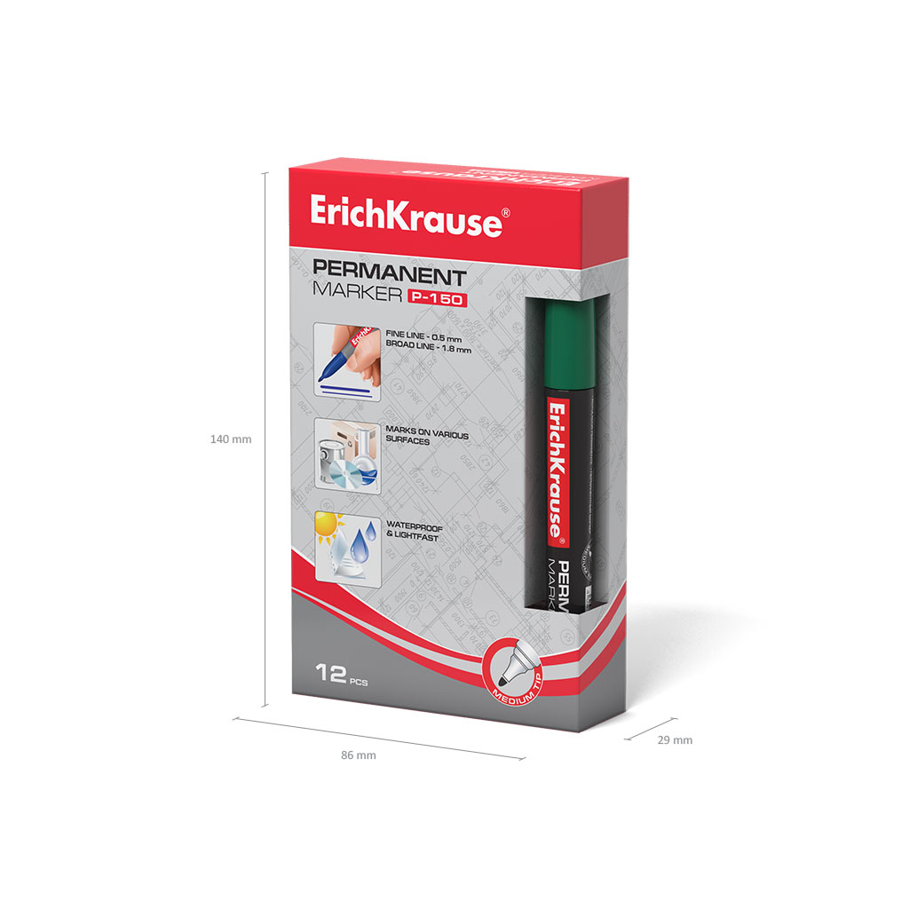 Перманентный маркер ErichKrause® P-150, цвет чернил зеленый (коробка 12 шт.) |