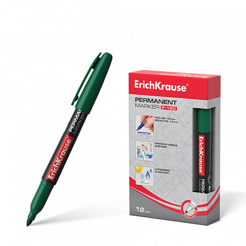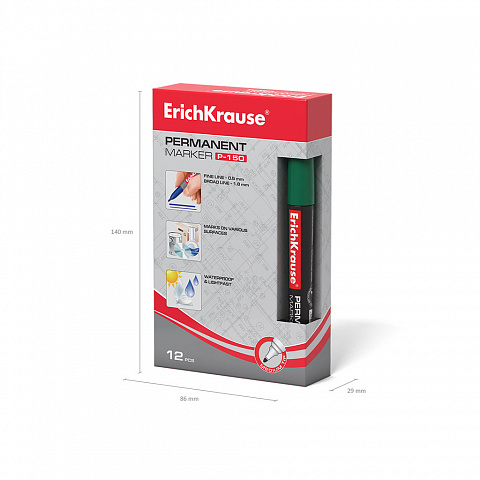 Перманентный маркер ErichKrause® P-150, цвет чернил зеленый (в коробке по 12 шт.) |