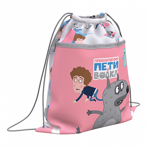 Мешок для обуви ErichKrause с карманом на молнии 500x410мм Приключения Пети и Волка (Полёт) |