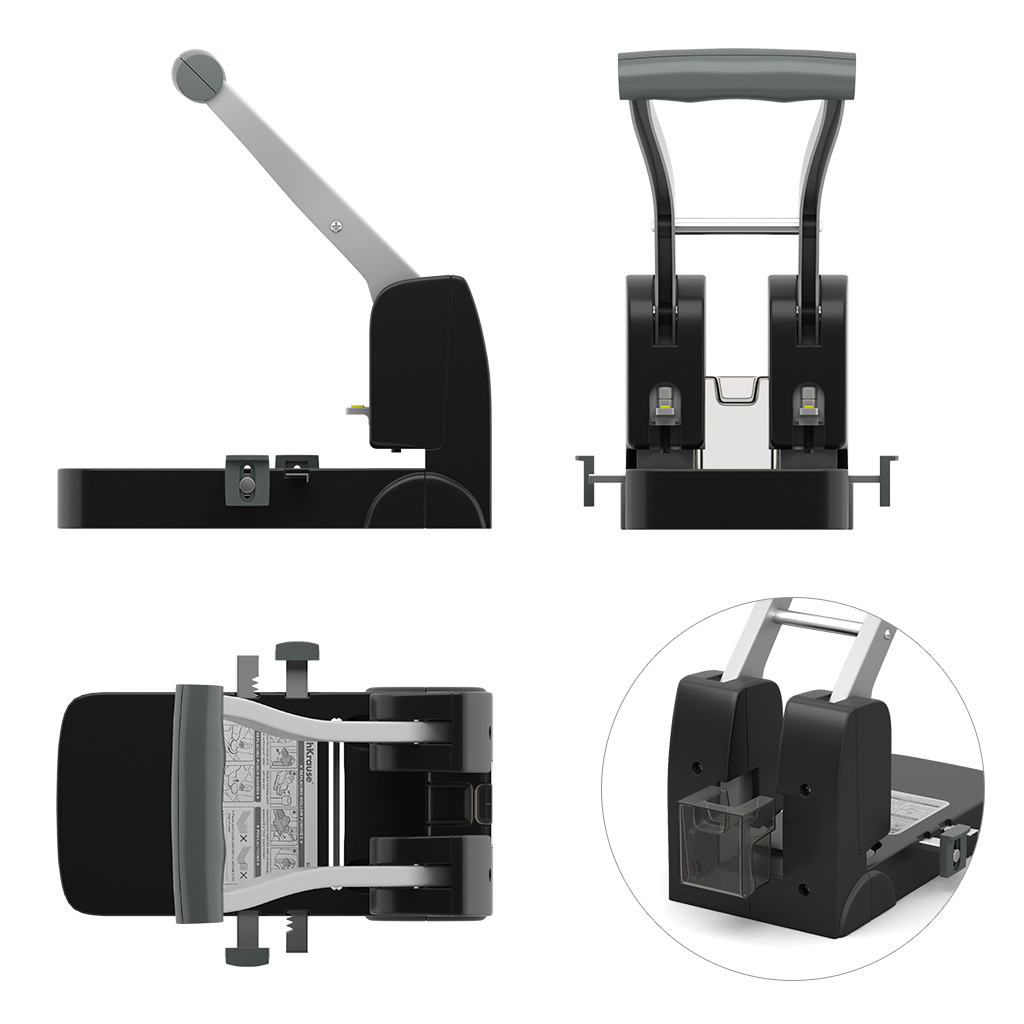 Мощный дырокол предназначен для пробивания большого объема документов. Пробивает до 100 листов. Имеет резервуар для конфетти и линейку для выбора форматов. Mеханизм изготовлен из высококачественной стали. Гарантия на механизм 2 года. Противоскользящая прорезиненная ручка. Имеет встроенный фиксатор для хранения дырокола в сложенном положении. Диаметр прокола 6мм. Расстояние между проколами 80мм. Размер пробивного ножа: 25.8ммх6мм (запасные ножи в комплект не входят). |