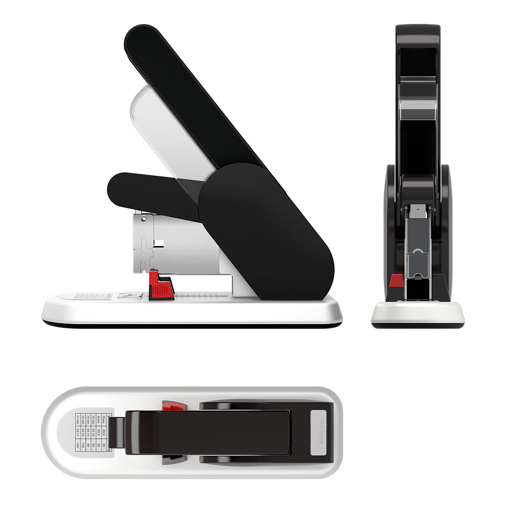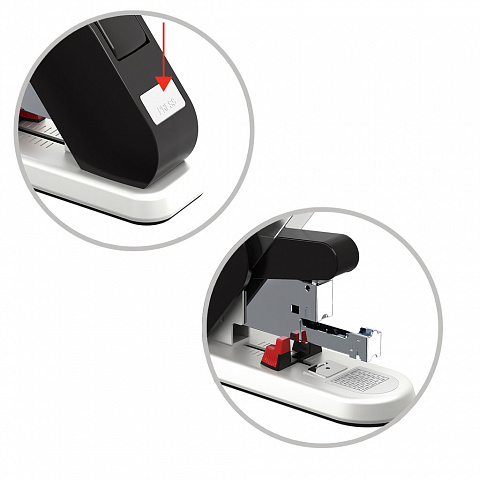 Уникальный механизм степлера экономит до 60% усилий при скреплении большого объема документов. Регулируемое расстояние до места скрепления. Использует и вмещает до 100 скоб 23/6, 23/8, 23/10, 23/13, 23/15, 23/17. Максимальный объем скрепления до 130 листов достигается при использовании скоб 23/17. Имеет систему автоматической подачи контейнера для загрузки скоб. Глубина закладки бумаги 70 мм. |