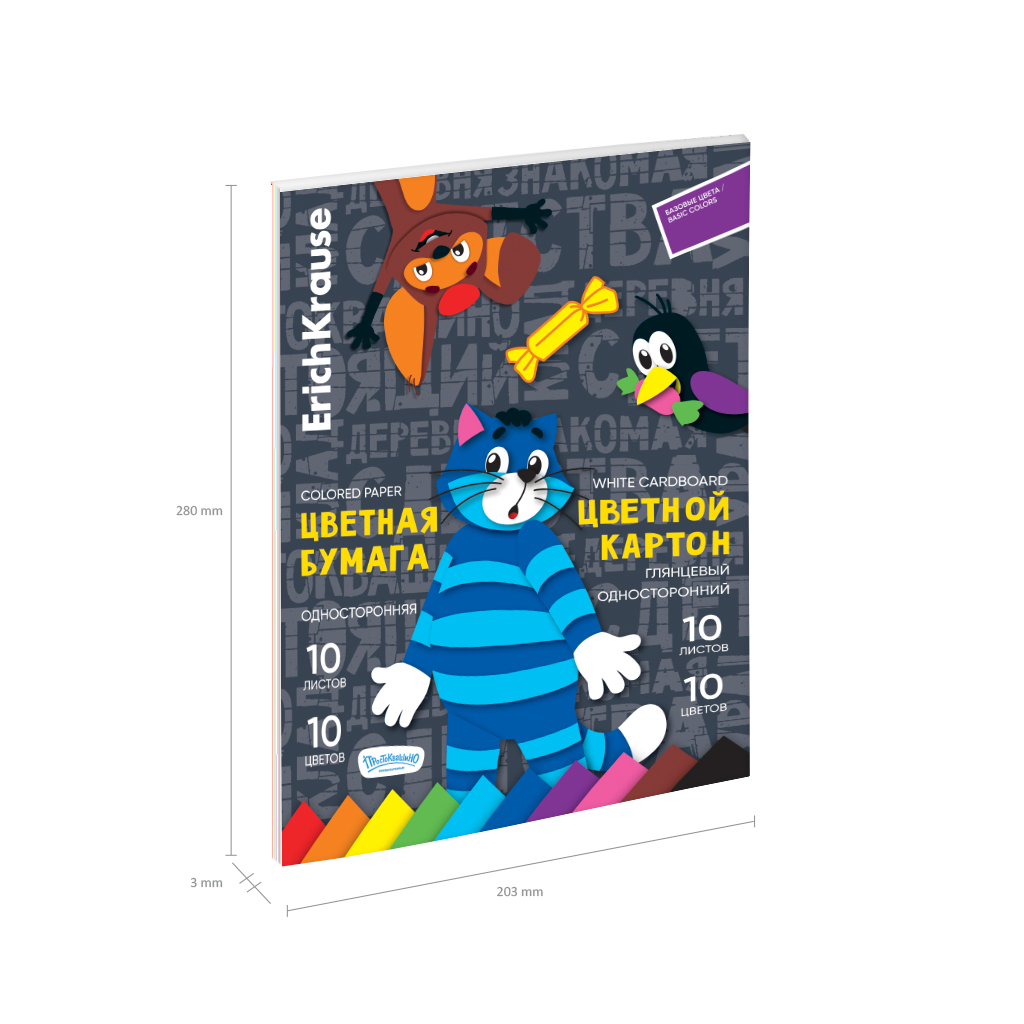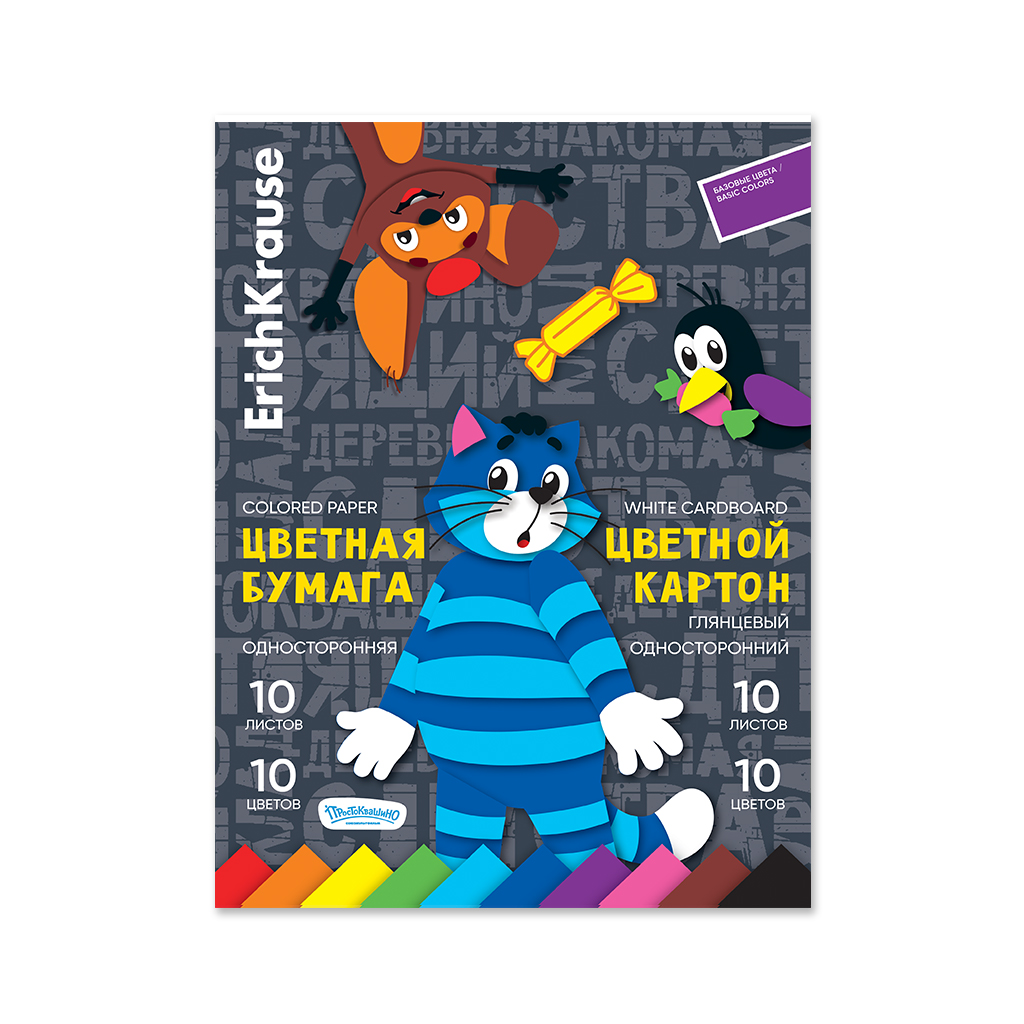 Набор цв.бум.и картона глянцевого на клею ErichKrause, Простоквашино, А4, 20 листов, по 10 цв., игрушка-набор для детского творчества |