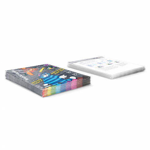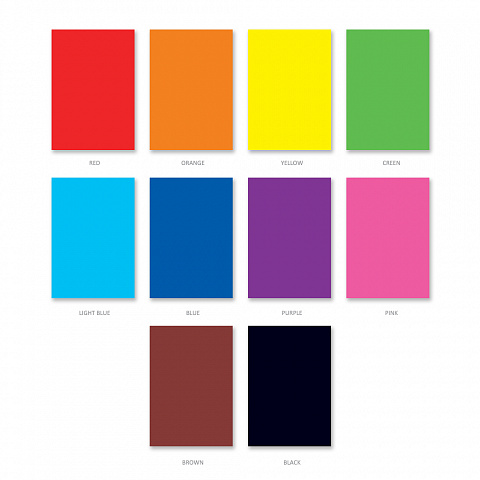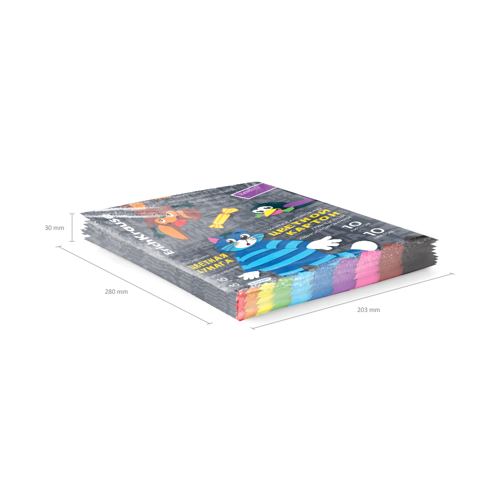 Набор цветной бумаги мелованной односторонней и картона глянцевого одностороннего формата А4 (203х280 мм). В наборе 20 листов бумаги и картона 10 базовых цветов (красный, оранжевый, желтый, зеленый, голубой, синий, фиолетовый, розовый, коричневый, черный). Плотность наполнения: бумага - 80 г\м2, картон — 170 г/м2. Тип скрепления — клей. На внутренней стороне обложки приводятся инструкции по изготовлению поделок. Упакована в термоусадочную пленку по 10 штук. |