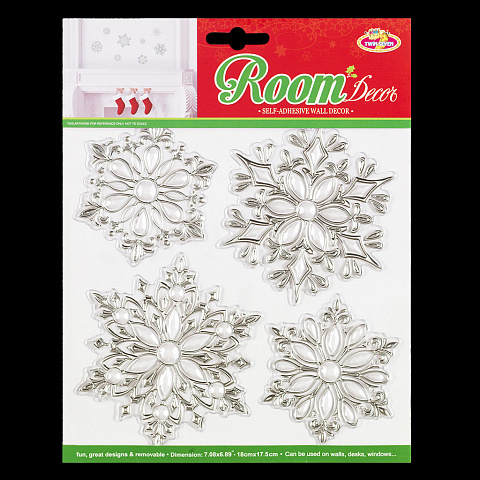 Набор состоит из 4 наклеек размером от 8 см до 10.5 см. Серебряный контур деликатно подчеркивает богатство жемчуга - именно такой эффект имеет каждая снежинка. Все снежинки имеют различный дизайн. Данный тип наклеек особенно хорошо будет смотреться на стеклянных и зеркальных поверхностях. Кроме оформления новогоднего интерьера, благодаря набору можно скрыть царапины, сколы на мебели и т.п. Наклейки быстро крепятся и легко снимаются, не оставляя следов. Не рекомендуется использовать детям до 3 лет. Упаковка - картонная подложка с европодвесом в полибэге высокого качества. |
