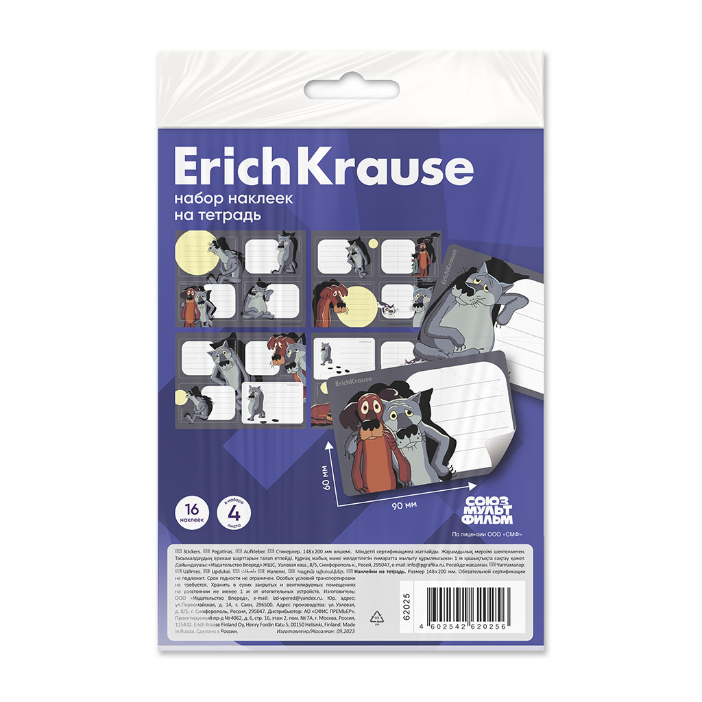 Наклейки на тетрадь ErichKrause Жил-был Пес, 4 листа, в пакете с европодвесом |