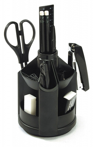 Вращающийся набор "MINI DESK" Fregatte идеально подойдет для удобного хранения настольных принадлежностей. Компактный и эргономичный. В комплекте: степлер № 10, 500 скоб, 2 карандаша, 2 ручки, 20 скрепок, ластик, точилка, линейка, ножницы, нож канцелярский. |