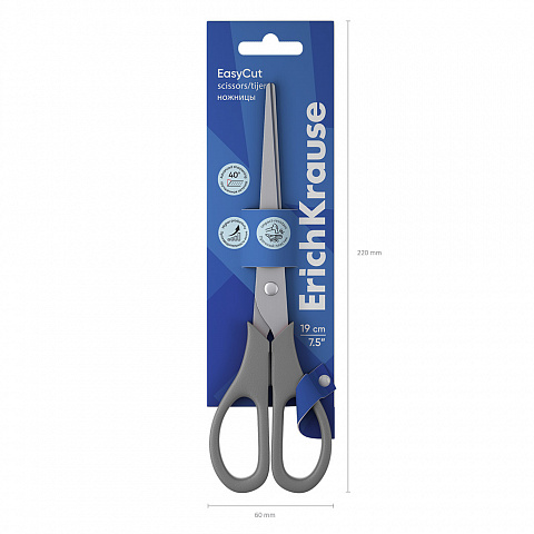 | Полное наименование товара: | Ножницы ErichKrause EasyCut, 19 см, ассорти (в блистере по 1 шт) |