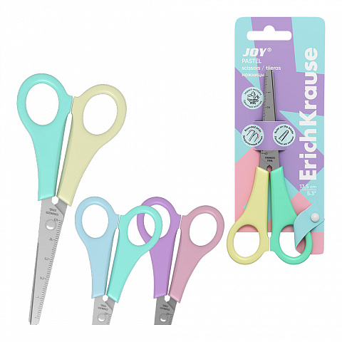 Ножницы ErichKrause JOY ® Pastel, 13.5см, ассорти (в блистере по 1 шт.) |