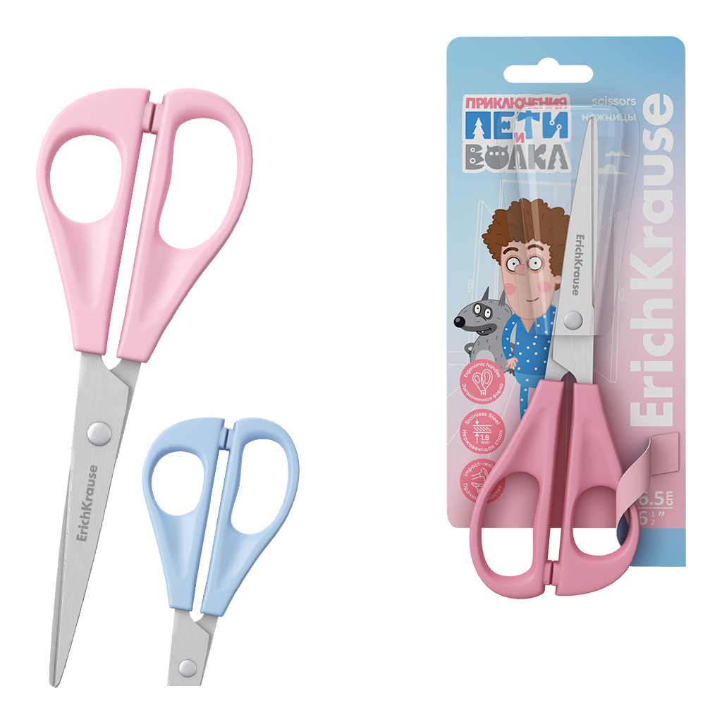 Ножницы ErichKrause Приключения Пети и Волка, 16.5см, ассорти (в блистере по 1 шт.) |