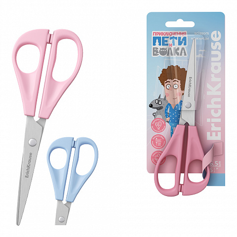 Ножницы ErichKrause Приключения Пети и Волка, 16.5см, ассорти (в блистере по 1 шт.)