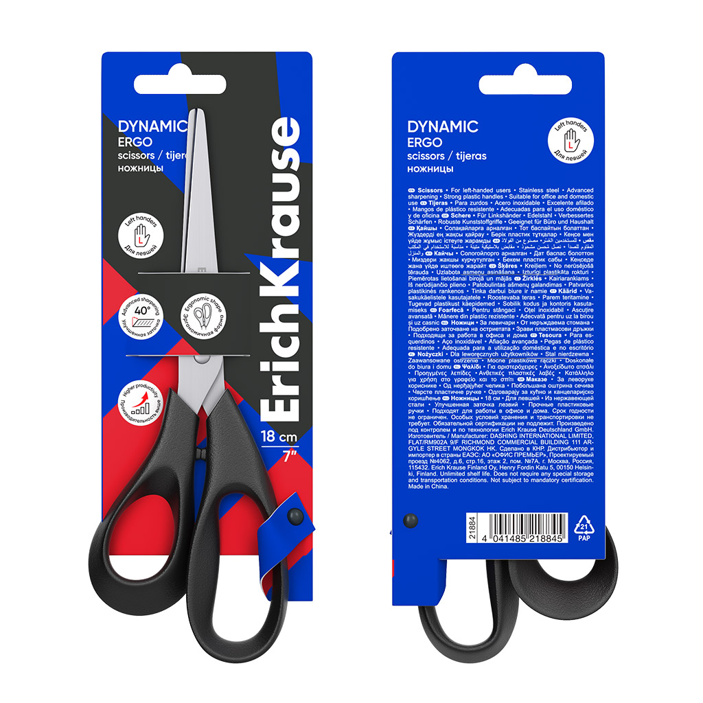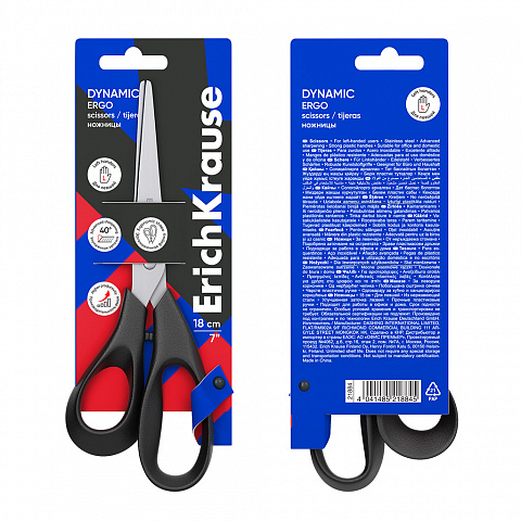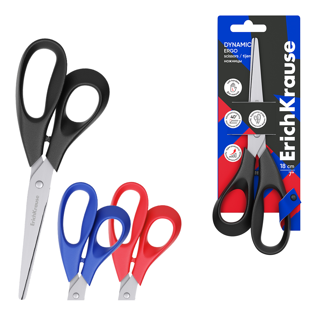 Ножницы для левшей ErichKrause Dynamic, 18см, ассорти (в блистере по 1 шт.) |