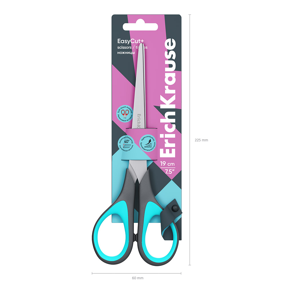 Ножницы ErichKrause EasyCut+, 19см, ассорти (в блистере по 1 шт.)