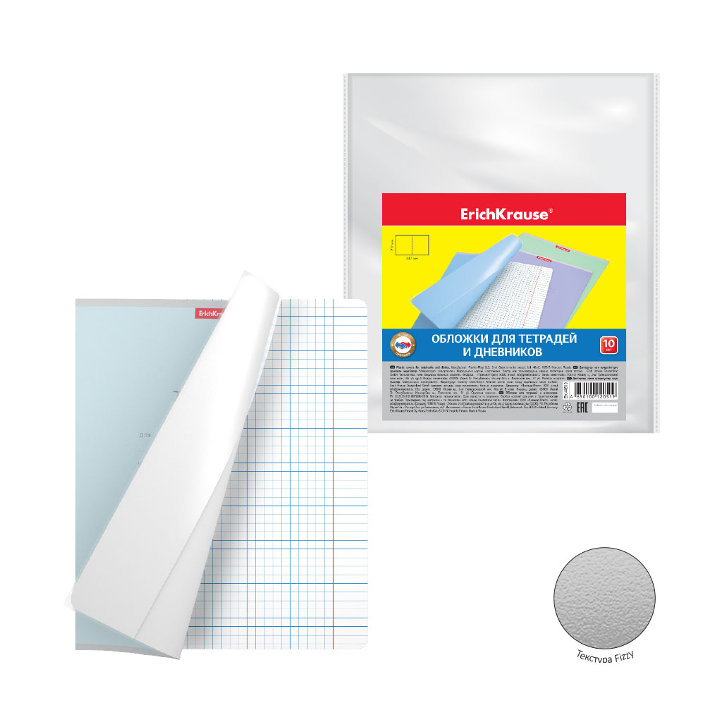 Набор пластиковых обложек ErichKrause Fizzy Clear, для тетрадей и дневников, 212х347мм, 50 мкм (пакет 10 шт.) |