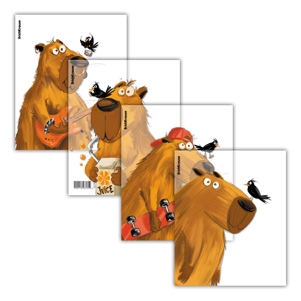 Набор пластиковых обложек ErichKrause Happy Capy, для тетрадей и дневников, 212х347мм, 80 мкм, ассорти (пакет 12 шт.)