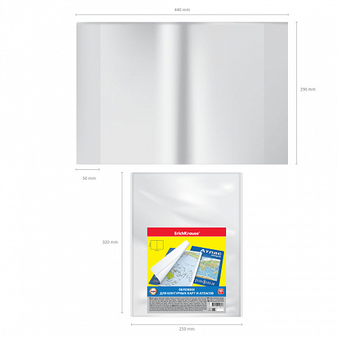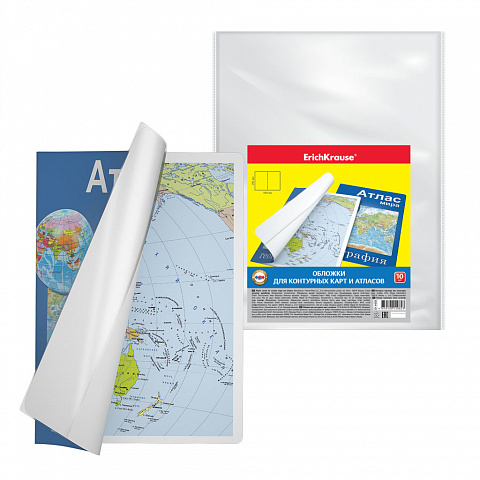 Обложки пластиковые ErichKrause® для контурных карт и атласов, 296х440мм, 50 мкм (пакет 10 шт.)