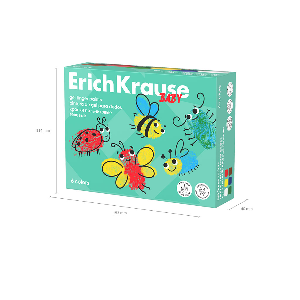 Краски пальчиковые гелевые ErichKrause Baby с Алоэ Вера 6 цветов по 35 мл (в коробке 6 шт) |