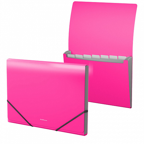 Папка-картотека пластиковая ErichKrause® Neon, с 6 отделениями, A4, розовый (в пакете по 1 шт.)