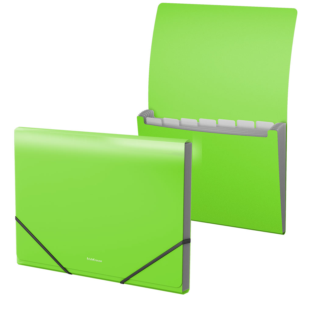 Папка-картотека пластиковая ErichKrause® Neon, с 6 отделениями, A4, зеленый (в пакете по 1 шт.)