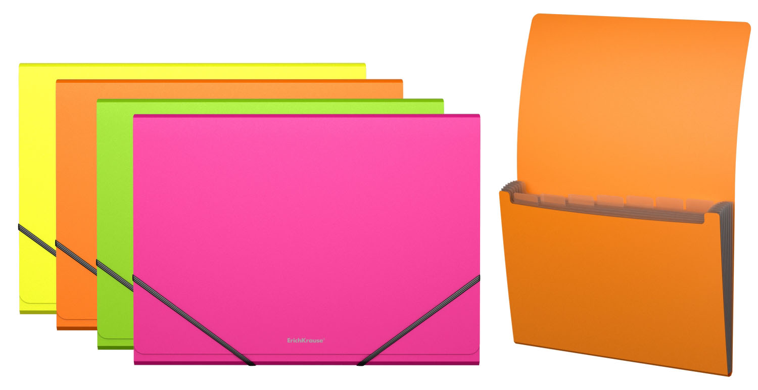 Папка-картотека пластиковая ErichKrause® Neon, с 6 отделениями, A4, ассорти (в коробке-дисплее по 6 шт.) |