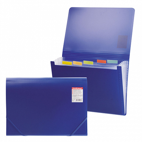 Папка-картотека пластиковая ErichKrause® Standard, с 6 отделениями, A4, синий (в пакете по 3 шт.)
