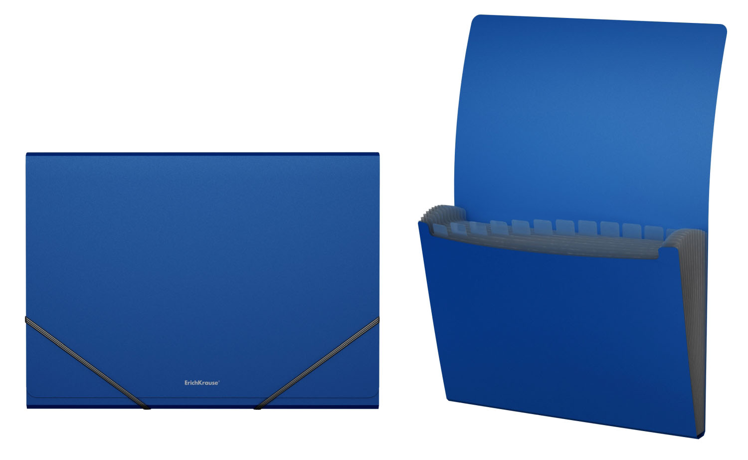 Папка-картотека пластиковая ErichKrause® Classic, с 12 отделениями, A4, синий (в коробке-дисплее по 6 шт.)