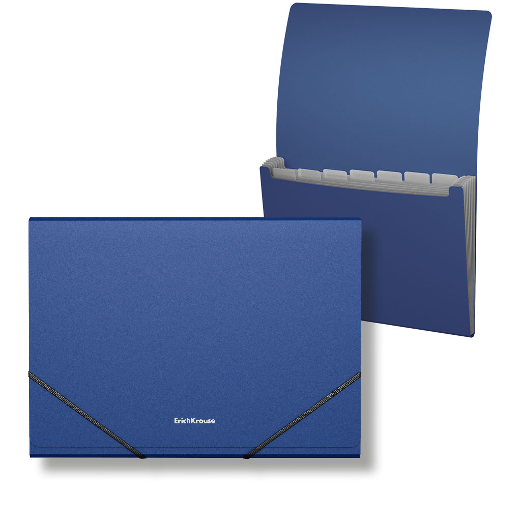 Папка-картотека пластиковая ErichKrause Matt Classic, с 7 отделениями, A4, синий (в пакете по 4 шт.)
