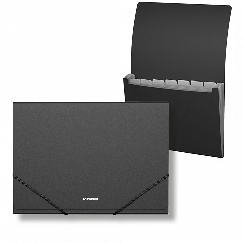 Папка-картотека пластиковая ErichKrause Matt Classic, с 7 отделениями, A4, черный (в пакете по 4 шт.) |